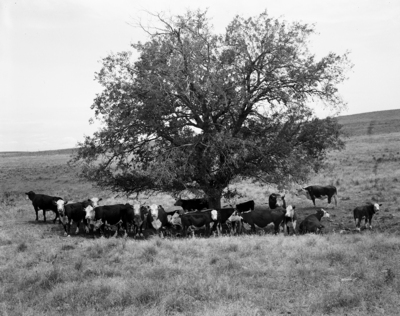 Wade Moore, former Tarrant County farmer who was forced to move because his farm was located where Lake Benbrook now, runs some 65 Herefords on his new place near Aledo, in Parker County.