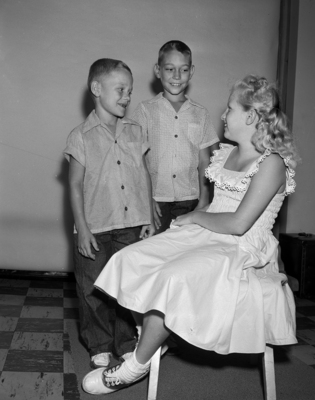 Young Salesman - Randy and Terry Voss and Lynn Beth Rasmussen, left to right, recently earned $3 for the Star-Telegram Milk and Ice Fund through the sale of soft drinks. Randy and Terry are the sons of Mr. and Mrs. Edgar Voss of 7460 Aberdeen Drive, and Lynn Beth is the daughter of Lieutenant Colonel and Mrs. D. E. Rasmussen of 7448 Aberdeen Drive.