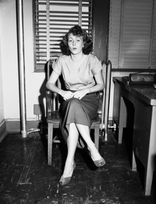 Wanda Jean Baugh, 22, had a restless night as she confessed Saturday morning for the Thursday night, August 13, knife slaying of Mrs., Bertha Eula Fyans of 2405 Race. She was surrendered to Detectives Grady Haire and Oliver Ball through her lawyer, Dave Miller. Baugh had been sought ever since Mrs. Fyans was fatally wounded, and Mrs. Fyan's sister, Mrs. Marjorie Batson, 2435 Leming, was stabbed inside Dancer's Lounge, at 1202 Jacksboro Highway.