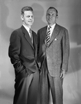 G. E. Coon, Southwest regional sales director of American airlines (left), stands next to C. R. Speers, American Airlines general sales manager and assistant vice president (right). The image was taken while the two met to confer in Fort Worth. Published in the evening edition, May 2, 1950.