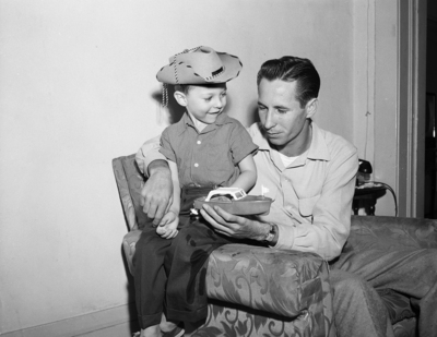 Back Home In Texas - Sgt. Bobby W. Jarvis of Wichita Falls, an ex-POW who arrived for a visit, got acquainted with his 4-year old nephew, Mike Greene, whom he'd never seen.
