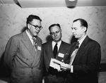 Drs. W. M. Pratt of Houston, president-elected; C. F. Miller of Waco, secretary-treasurer, and D. P. Laugenour of Dallas, president, left to right, were elected by the Texas Air-Medics Association at the Blackstone Hotel. The three men are looking at a paper.