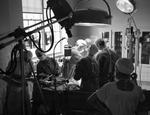 In a dramatic setting in St. Joseph's Hospital operating room, color television cameras are focused as a staff of doctors and nurses from Scott and White Hospital, Temple, begin surgery.