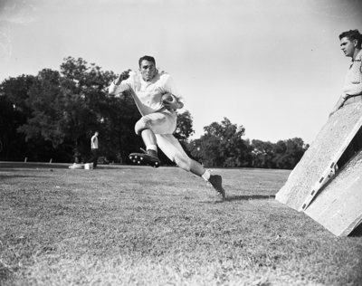 Robert Crow, Paschal's starting fullback, One of the fastest boys on the squad. He is shown running with a football.