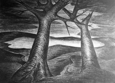 This print by Miss Mildred Moore, art teacher at Mary Louise Phillips School, was included in a showing of work of members of the Art Education Association at their closing luncheon at the Blackstone Hotel. Published in Fort Worth Star-Telegram evening edition May 9, 1950.