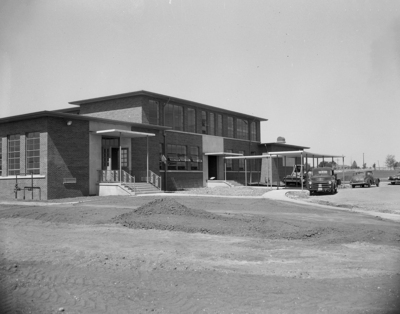 The new 10-classroom Wycliff Elementary School, Fort Worth, Texas, scheduled to open. The building costs $209,116, more than $40,000 less than allocated. The image shows the exterior view of the building. To the right is a covered entrance between the street curb and main entrance, an innovation in school construction here. Image shows The new 10-classroom Wycliff Elementary School, Fort Worth, Texas, scheduled to open. The building costs $209,116, more than $40,000 less than allocated. To the right may be seen a covered entrance between the street curb and main entrance, an innovation in school construction here.
