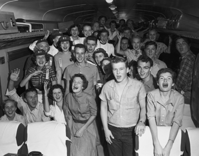 A group of TCU students who left on a train en route to Fayetteville for a game against the Arkansas Razorbacks.