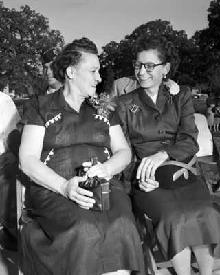 Watching ceremonies at Arlington in honor of their son and brother, Sergent John Day, a returned prisoner of war are, in left photo, Mrs. Etta Page, left of Arlington and her daughter, Mrs. O. V. Lynch.