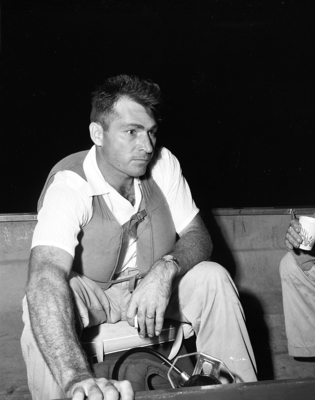 Dumont M. Rutherford of Dallas stares across Grapevine Lake looking for signs of the body of his friend, John Edgar Phillips, 45, of Dallas, who drowned Sunday afternoon. Rutherford, Phillips and D. M. Rutherford Jr., 3, were riding in a motorboat when it capsized. The body of Phillips had not been recovered by midnight Sunday as more than a dozen boats searched.