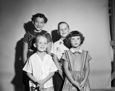 A needy child on the Star-Telegram Milk and Ice rolls will receive a quart of milk a day for almost five months as the result of one afternoon's work by these four children. Earning $30.25 with a milk and ice cold drink stand at 108 Lindenwood Drive were Steve Gorski and Carol Ann Hill, front left to right, and Reisha Williams and Ted Gorski Jr., back left to right.