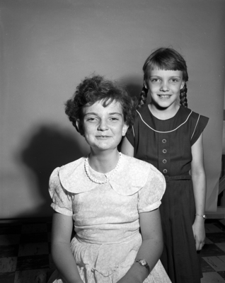 Charlotte Morton, 11, daughter of Mr. and Mrs. A. D. Morton, left, and Jacqueline Barhydt, 10, daughter of Mr. and Mrs. L. H. Barhydt of 1019 Hawthorne, recently sponsored a benefit show that netted $7.90 for the Star-Telegram Milk and Ice Fund. Neighborhood children participated.