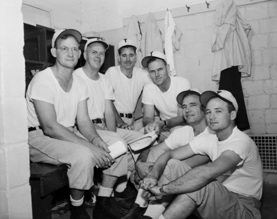 Frog Directors - Here's Texas Christian University's (TCU) 1953 football coaching staff, left to right, Walter Roach, Buster Brannon, Fred Taylor, Abe Martin, Allie White and Carl Knox. This is Martin's in first year as head coach.
