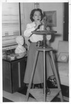 Mrs. Electa Waggoner Biggs at sculpting stand, 01/01/1950