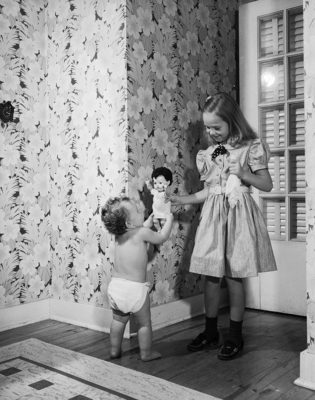 Barbara Ann Overby, with her sister Marilyne holding a doll.