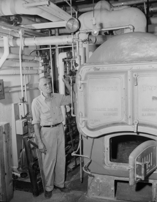 F. G. Bale, custodian at Oakhurst Elementary checks boiler room equipment.