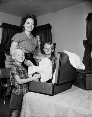POW Families. Mrs. Leonard B. Bounds Jr. and her two sons, Bobby and Larry.