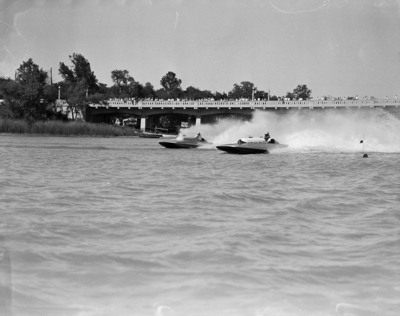 Tommy Normille, and Tom Davis in last lap of hydro race at Lake Worth.