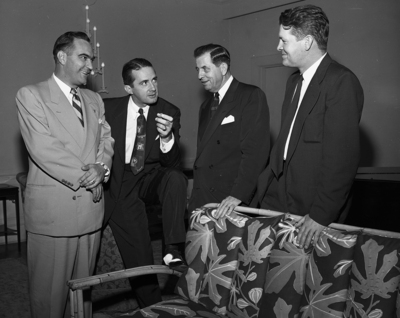 Pictured here, from left to right, are Governors Edward F. Arn of Kansas, Allan Shivers of Texas, Johnston Murray of Oklahoma, and Edwin L. Mechem of New Mexico here meeting at the River Crest Country Club.