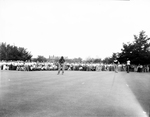 James Vickers of the University of Oklahoma sinks the seven-foot putt that ends his 19-hole match against Frank Stranahan in the Western Amateur at Dallas. Published in Fort Worth Star-Telegram morning edition May 4, 1950.
