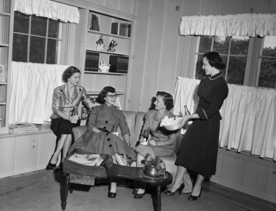 The Social Side: After business, comes pleasure. Left to right are Mmes. Robert C. Haltom, Paul E. Love, Jack Turnbow and Van E. Hall.