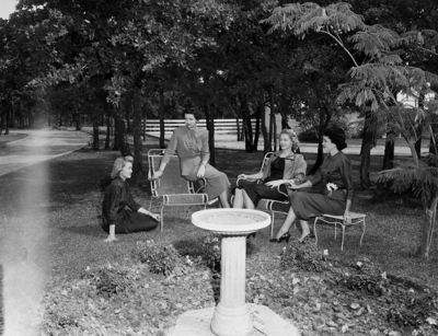 Shady Grove: Enjoying a sweep of lawn and shade, left to right are Mmes. Robert Widmer, Burl B. Hulsey Jr., Ralph Johnson and WM. H. Reinwald.