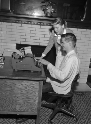 The Fort Worth Crippled Children's Society has started a program of adult rehabilitation at its treatment center, 1508 Hemphill. With his left hand, Charles Constant of 708 East Arlington, will soon be able to type over the entire keyboard. His right arm and leg are partially paralyzed because of a brain injury. Miss Patricia Hart, occupational therapist, will teach him exercises to regain control of the affected limbs.