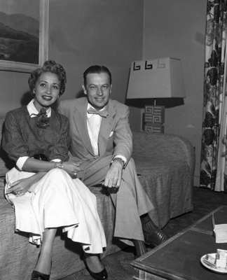 Jane Powell will add a dash of fun and glamour to the United Fund's kickoff dinner. With her is Charles Stall, chairman of the Fund's advertising committee.