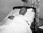 Bob Cockrum, 64, Mills County farmer, thought he could talk Tommy Fuller out of a shooting spree in Goldthwaite. Instead Fuller turned the gun on Cockrum, shown in Brownwood hospital recovering from a severe wound in the right leg.