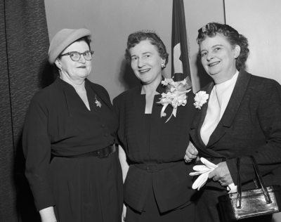 At a luncheon of the Fort Worth Business and Professional Women's Club, Incorporated, Dr. Maude Gruby, left, chairman, and Miss Hazel Palmer of Selida, Mo. center, was guest speaker. She was introduced by Mrs. Marjorie McMahon, right. The luncheon celebrated National Business Women's Week.