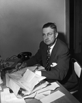 Portrait of Claude Castleberry, dressed in a well tailored suit, supervisor at Texas State College for Women (TSCW) dining hall. Published in Fort Worth Star-Telegram morning edition May 7, 1950.