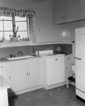 An electric dishwasher (at right) and a waste disposal unit (under the sink) are a part of the modern appliances found in the kitchen at the home of Mr. and Mrs. Noble Acuff, 6325 Waverly Way. Size of the kitchen in the 1950 house depends on the size of the dwellings. Larger homes like the Acuff dwelling have mall but efficient kitchens. Smaller homes frequently have larger kitchens. Smaller homes frequently have larger kitchens for combinations for dining or breakfast rooms. Published in Fort Worth Star-Telegram morning edition May 14, 1950.