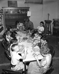 The Public Library basement workroom houses this scene when elementary school-age youngsters from 22 schools gather for clay-modeling instruction from Sculptor Evaline Sellors. They are selected by their art teachers to participate in this free Fort Worth Art Association sponsored class which is one of the facets of the association's art program for children.