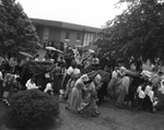 Clipping titled "Rain Breaks Up Procession". Sudden showers Sunday afternoon caused the thousands of Catholics gathered for a procession in honor of Christ the King to break ranks and seek shelter. The other scheduled ceremonies of benediction, rosary and consecration to the Sacred Heart took place when the rain stopped.