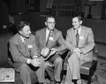 Three educators attending the Texas Association of Secondary School Principals convention at Hotel Texas discuss topics brought up during sessions. Left to right are D. E. Bailey of Beaumont, R. B. Norman of Amarillo and Bill Bush of Lampasas.