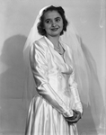 Portrait of Mrs. Francis George Dauphin, bride. She is the former Miss Joann Ratliff. They were married at St. Patrick's Catholic Church and reception was held at the home of the brides parents, Mr. and Mrs Earl Ratliff, 1700 E. Leuda. The bride wore a white satin gown, semi-formal with an ankle-length illusion veil attached to half hat.