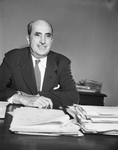 Election of Paul C. Brooke, Fort Worth division landman, as a vice president and transfer to Tulsa headquarters of Don R. Gearhart, a vice president and director, have been announced by Herbert B. Smith, president, Sinclair Oil & Gas Company. Paul C. Brooke is shown sitting at a desk.