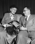 Miss Sadie Dawson, retired grade school teacher, participated in a program when the life of Joe Daiches was reviewed in a special program of the L. F. Shanblum Lodge, B'nai B'rith. The show was based on the TV program "This Is Your Life." She is shown with Daiches at the program.