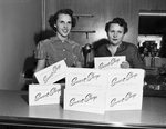 Homemade hand-dipped chocolates will be sold at the Sweet Shop at 2903 West Berry, owned by Mrs. Rudelle Helm and Mrs. Frances Howard. The store also will have a complete fountain service. Shown in front of the women are stacked boxes labeled, "Sweet Shop."