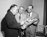 Paul Moon, left, 1953 sales chief of Golden Gloves' GG-men, tells Barney Parker, center, and Charlie Needham about program. Needham was head of the committee for that season.