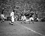 Ed Kelley, center, Texas halfback, snares a Baylor pass out of the hands of Bear Halfback L. G. Dupre on the Baylor 29 in the game at Austin. Coming up on the play is Texas' Delano Womack (44). The interception allowed the Longhorns start a 71-yard touchdown drive late in the second period.