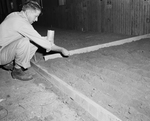 Grass was planted in a Will Rogers Memorial Grounds exhibit building for a display for the Texas Ranch and Farm Show, November 19-22. Jack Lair, associate agronomist for the Texas Research Foundation at Renner, is shown planting the grass.