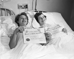 Pictured here are the sisters Mrs. I. B Alley, left, and Mrs. O. M. Wiser who both gave birth to an 8-pound baby daughter within seven hours of each other.