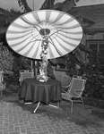 This patio table arrangement is by Mrs. Alfred McKnight for the coffee of the National Accredited Flower Show Judges and the guests attending.