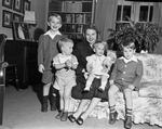 Mrs. Barney Bowie Holland and her children, left to right, Lindsey Bradford, Joseph Walker, Ellen Morland, and Barney Bowie III. Photo published as part of a series on Thanksgiving, the article lists Mrs. Holland (née Bradford) as a descendant of Plymouth Colony Governor William Bradford.