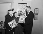 Mrs. E. F. Jones of 6759 Church, left, and Mrs. L. A. Ward of 6936 Hardesty are among the 30 volunteers from the Volunteer Center of the Council of Social Agencies who are distributing Christmas seal posters this week for the Fort Worth-Tarrant County Tuberculosis Society. Harge Magnussen, society publicity chairman, gives the two volunteers an armful for distribution. The posters read "Buy and use Christmas seals, fight tuberculosis."