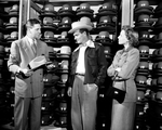 Salesman Bob Henderson, left, shows T. L. Matthews a Texas Style hat for Christmas. Mrs. Matthews agrees that it is an easy gift to choose for a man's Christmas.