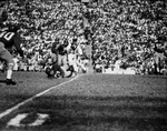 An official prepares to blow his whistle as the ball floats free from the arms of Doyle Nix. star of Southern Methodist University (SMU) end, as he crashes from a tackle by an unidentified Arkansas player. The official ruled the ball dead before the fumble. Pass gained eight yards to Southern Methodist University (SMU) 30 in first quarter of the game at the Cotton Bowl.