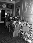 Members of Boy Scout Troop 55 stack a portion of the 5000 volumes contributed to the Douglas E. Humphrey Memorial Library at a special book matinee at the Worth Theater. Left to right are Billy Koci, 12, Paul Polanovich, 14, and Morris Oldham, 12.