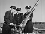 Inspecting Arlington's new $17,900 pumper fire truck bought with city of Arlington and Civil Defense Administration funds are left to right, Mike Thompson, Arlington fire chief; Bob Duncan, president of the Arlington Volunteer Fire Department, and J. W. Dunlap, Arlington fire marshal.