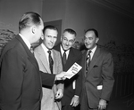 Talking over plans for 1954 Golden Gloves Tournament, are these members of Double-G Club, left to right, C. Allen McDaniel, Rae Gantt, John Repper and Steve Champeaux.